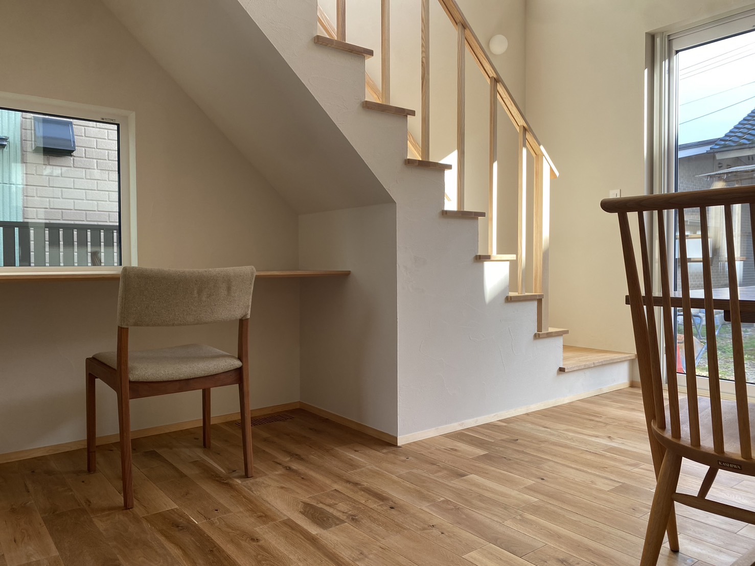 断熱等性能等級7以上(UA値0.19W/㎡・K)C値0.1㎠/㎡、長期優良住宅によって耐震等級3の構造、また羊毛断熱材や可変調湿気密シート、こうした性能数値に関することは完成写真からではもう見えなくなってしまっております。