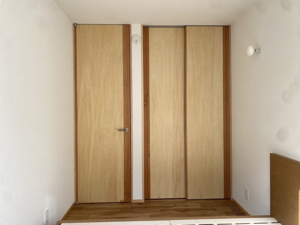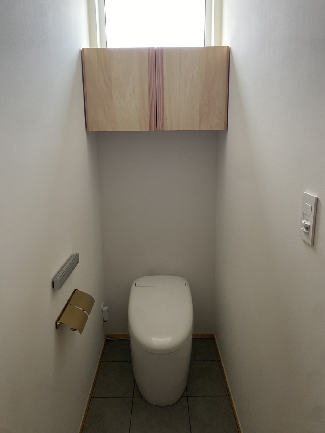 トイレットペーパーなどを保管していただく収納も室内扉と同様のデザインにて造作しております。