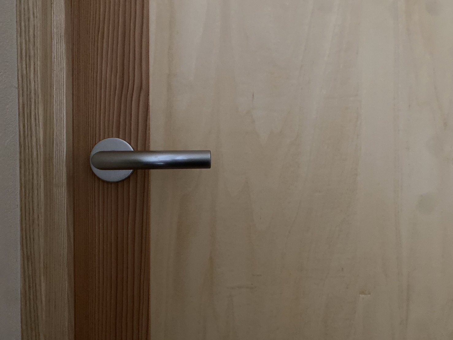 造作室内扉のドアノブを選ぶにあたり、木製玄関ドアのドアノブと似ている製品を選定させていただきました。