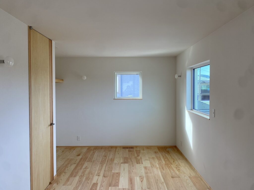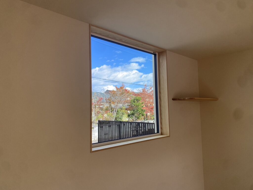 2階の子供室は北に面しておりますが若干大きめの窓を設けて暗くならないように検討しました。