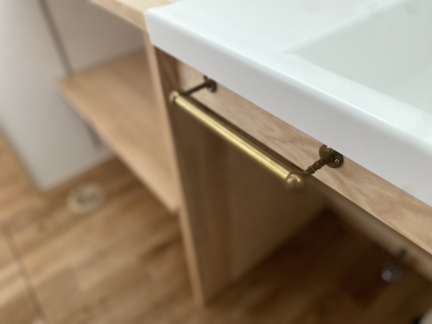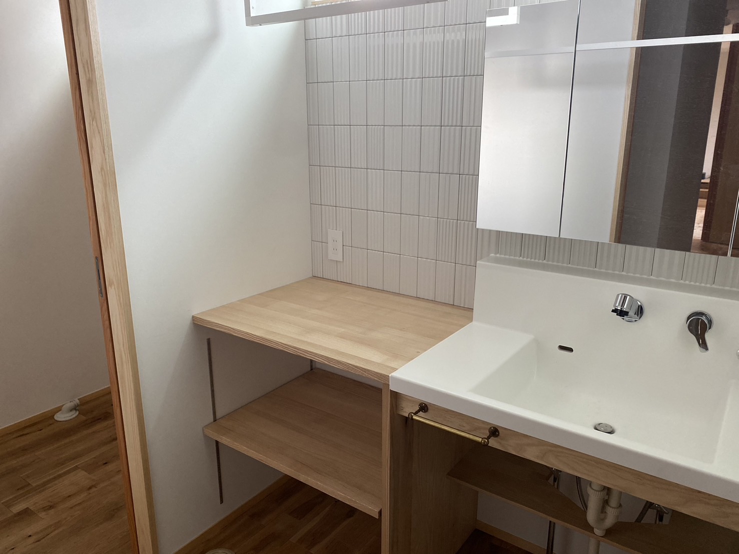 造作洗面を計画していて改めて良かったと感じたところは、質感やデザインだけではなく、お客様の身長や使い方にあわせて高さなどを調整できるところ。