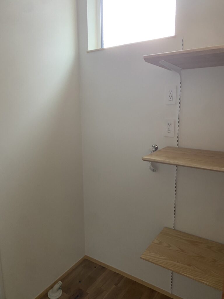 こちら各スペースの収納棚などは必要な分のみ造り付け、カゴやラックを置いていただくなど生活スタイルの変化に対応できるものをご提案させていただきます。