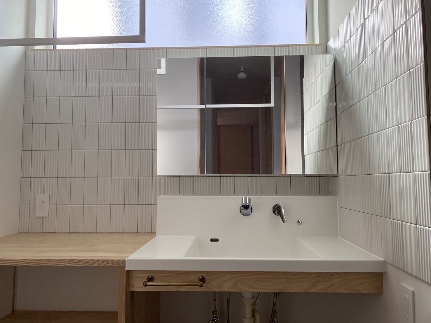 造作洗面を計画していて改めて良かったと感じたところは、質感やデザインだけではなく、お客様の身長や使い方にあわせて高さなどを調整できるところ。