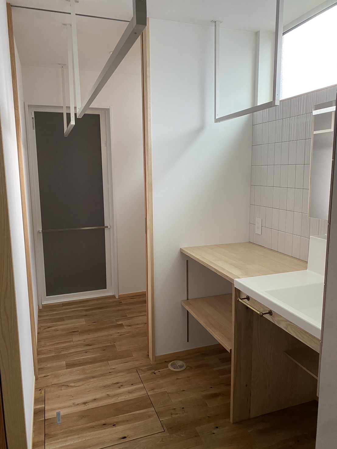 こちら各スペースの収納棚などは必要な分のみ造り付け、カゴやラックを置いていただくなど生活スタイルの変化に対応できるものをご提案させていただきます。