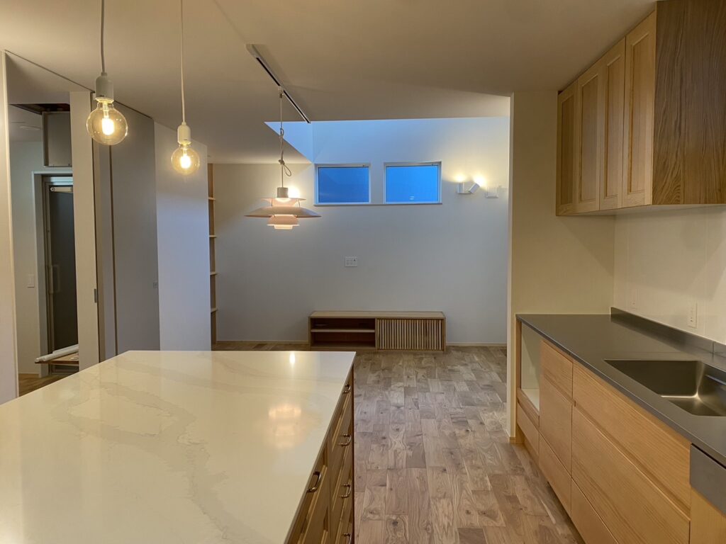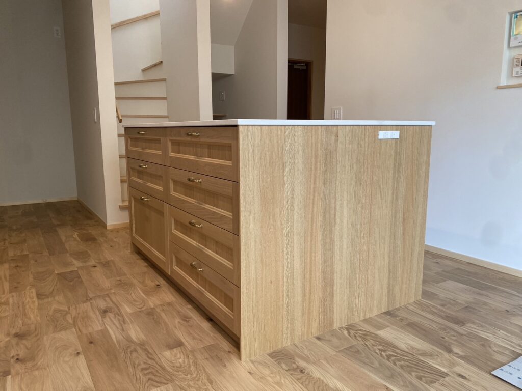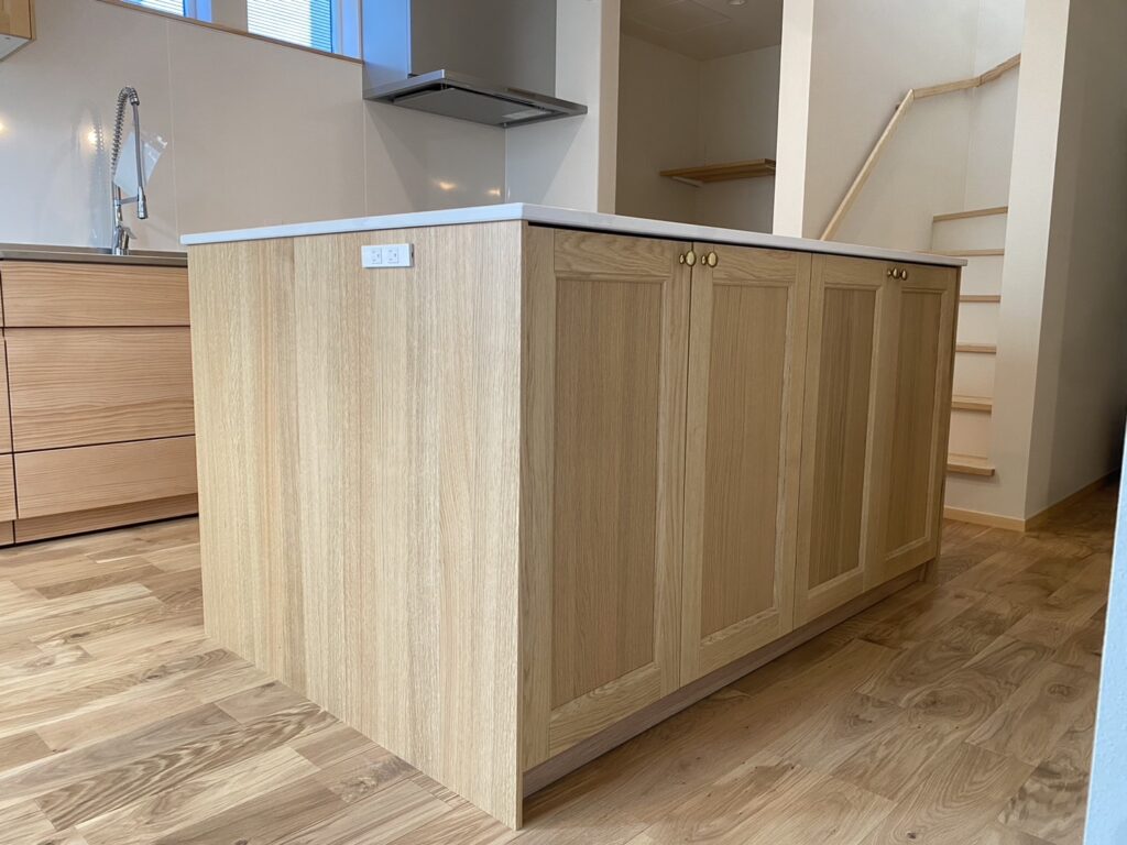 これと決めたのは壁付けキッチンとアイランド型作業台のレイアウト。