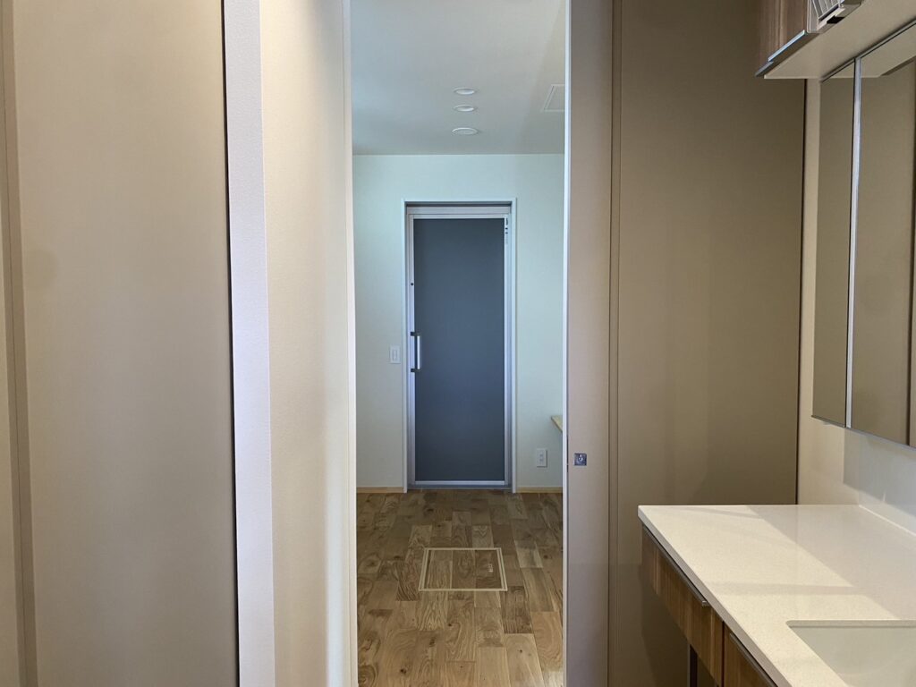 この動線上にある洗面台は廊下に設置、