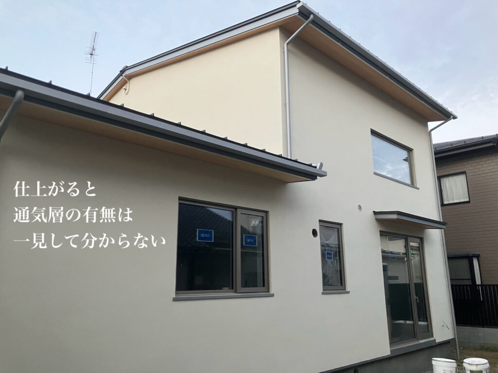 #008 のお住まいから、付加断熱材の外に通気層を設けモルタル外壁とした通気工法を採用することに。