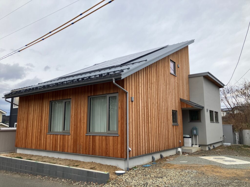 hygge#009建築地:福島県福島市(5地域)SPEC:UA値0.18【W/㎡・K】C値0.1㎠/㎡ 認定:認定長期優良住宅(耐震等級3、制震テープ) ZEH 木質系外装(板張り)と塗装仕上げの外観です。板張りに使用した素材は‘‘カラマツ‘‘、岩手県で育ち、伊達市の木材... -